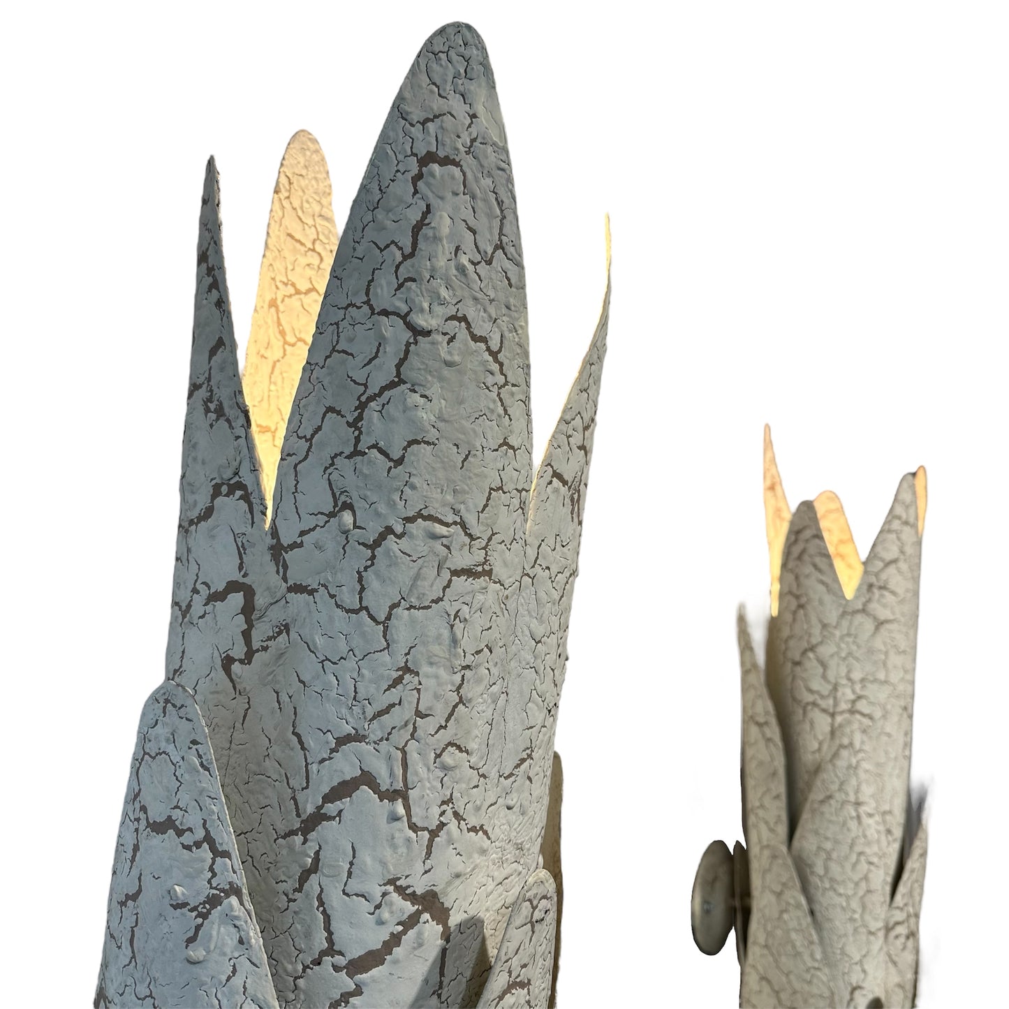 One-of-a-Kind Set of 2 Large Custom Postmodern Textured Brutalist Sconces
