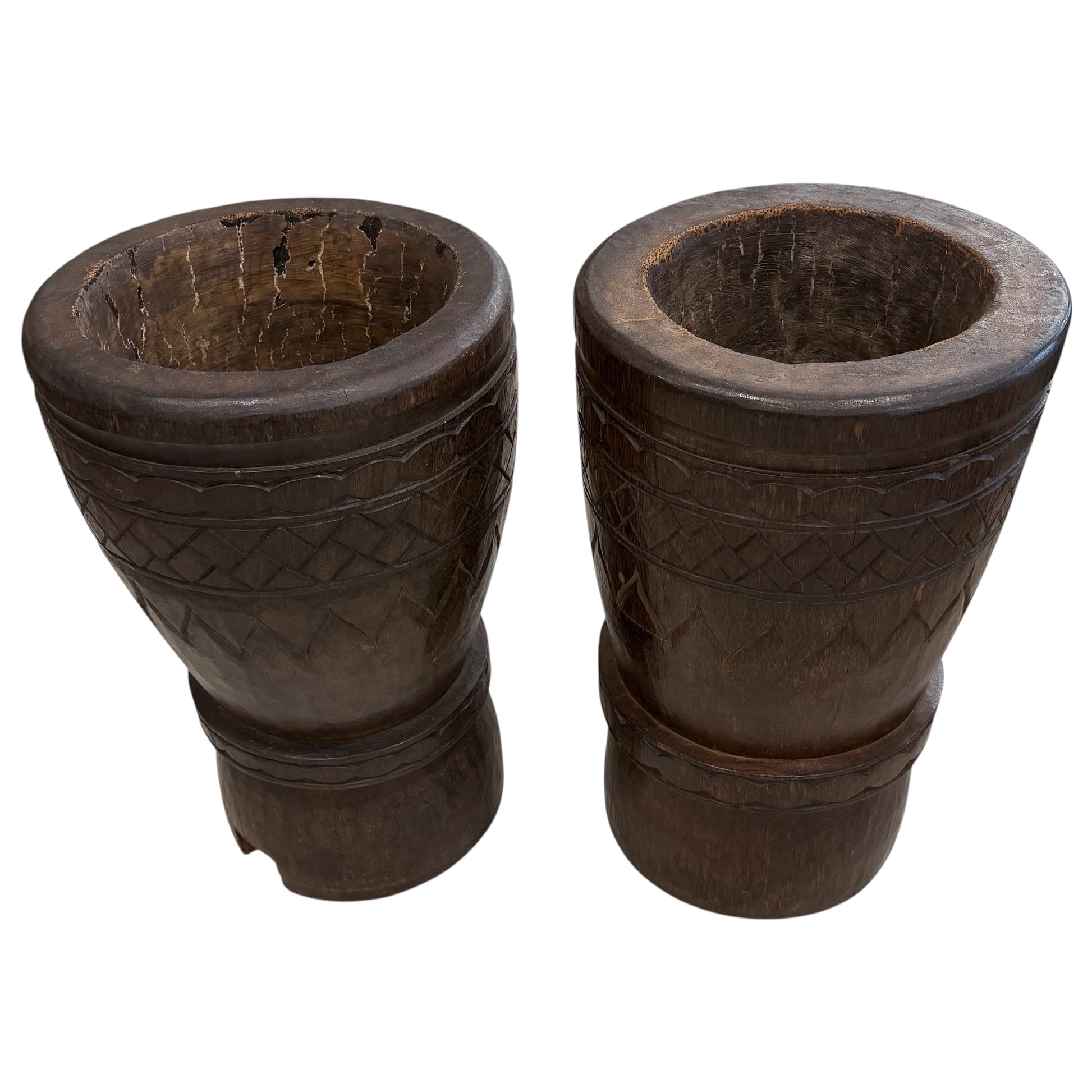 Pair of Solid Palmwood Asymmetrical Vintage Planters
