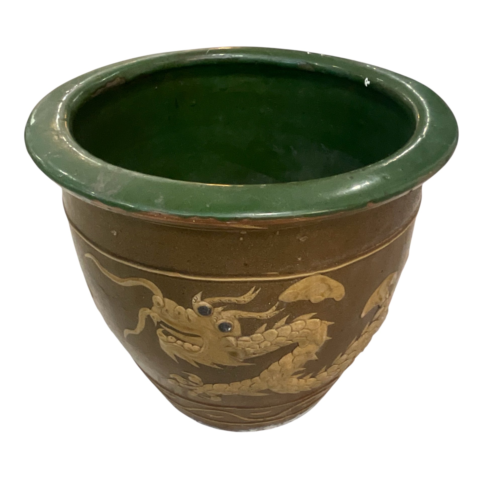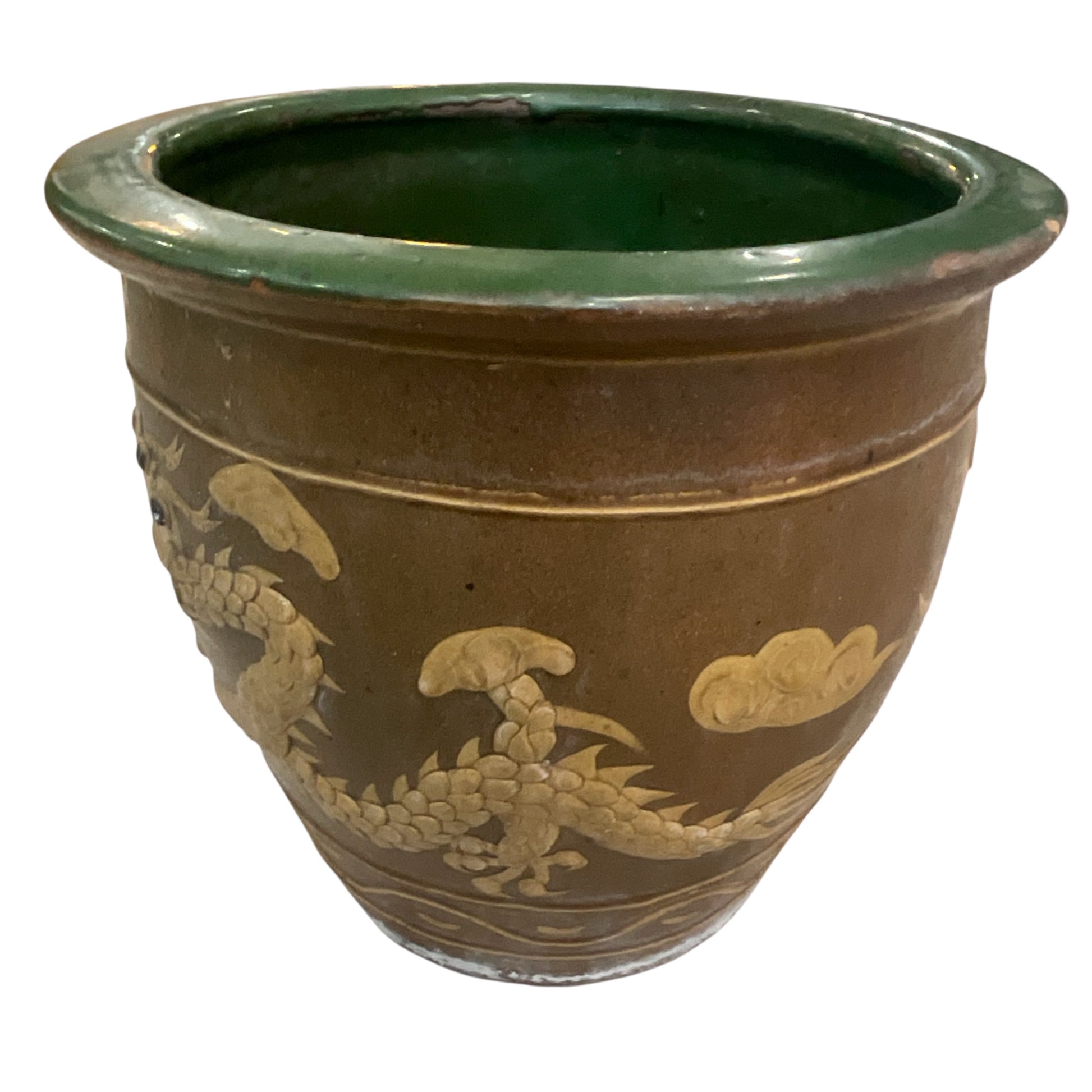 Chinese Dragon Egg Planter - Glazed Stoneware