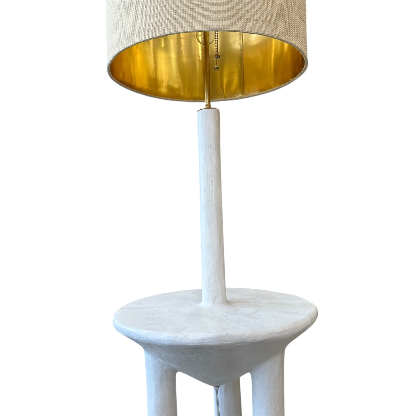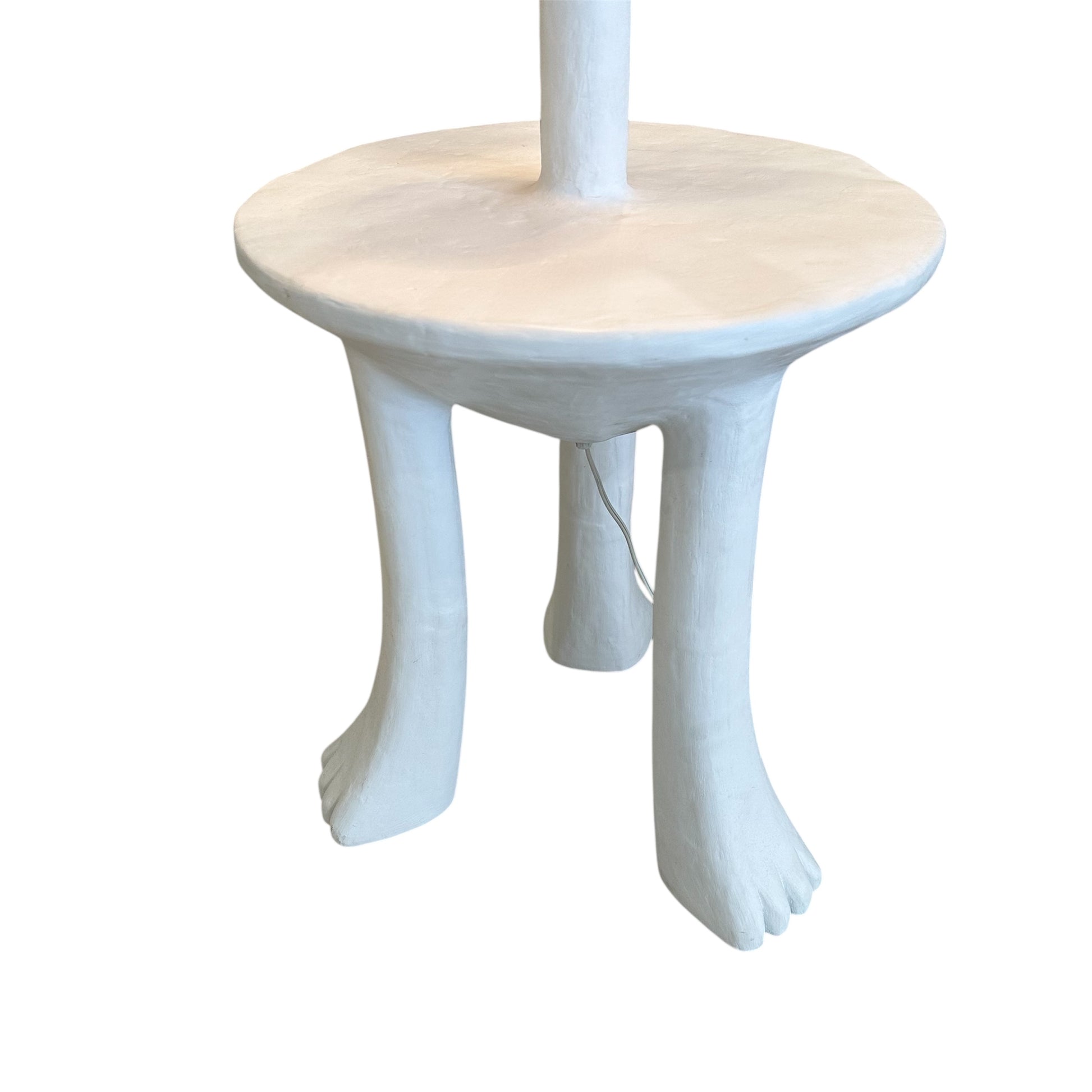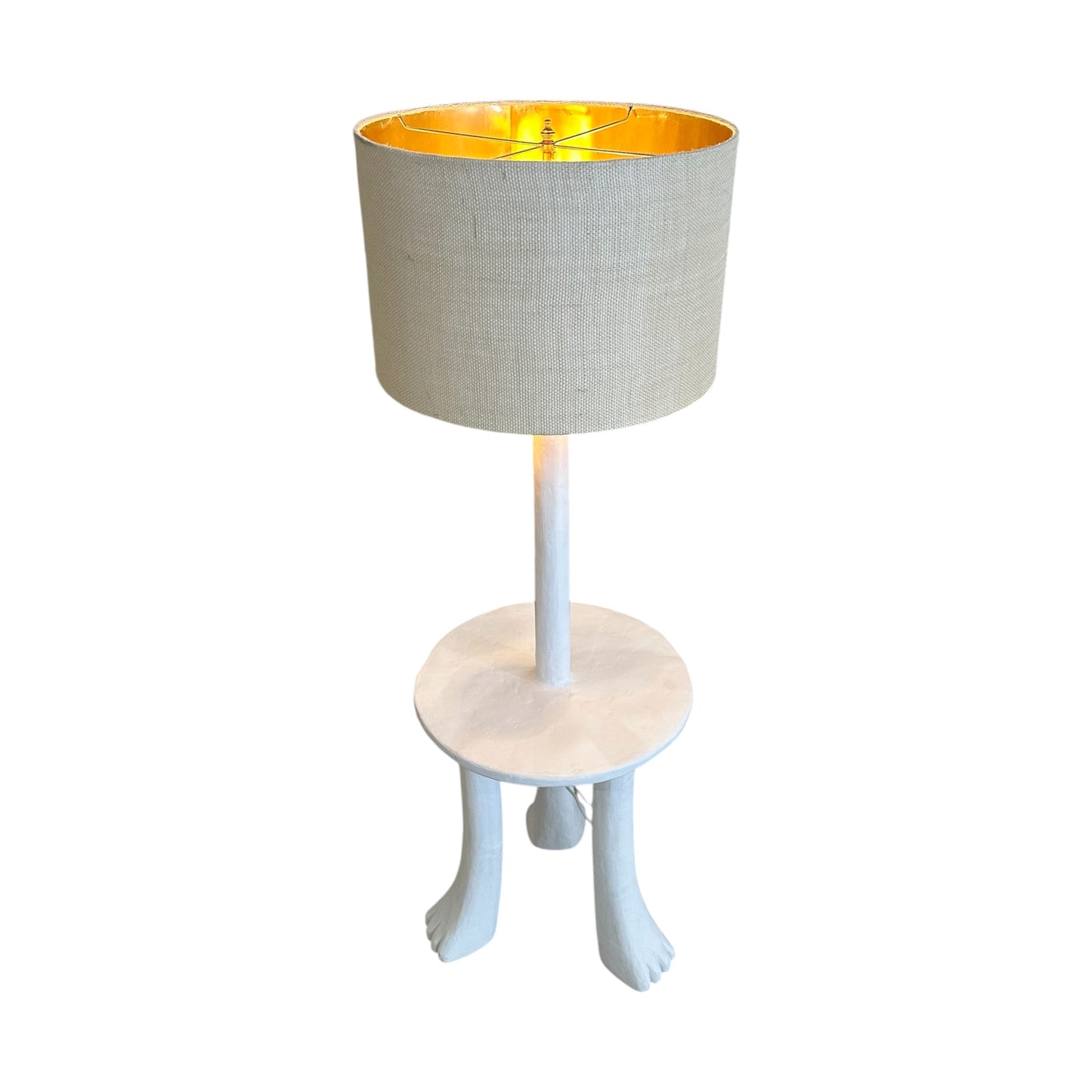 Primitive Plaster Over Hand Carved Wood Side / End Table / Floor Lamp