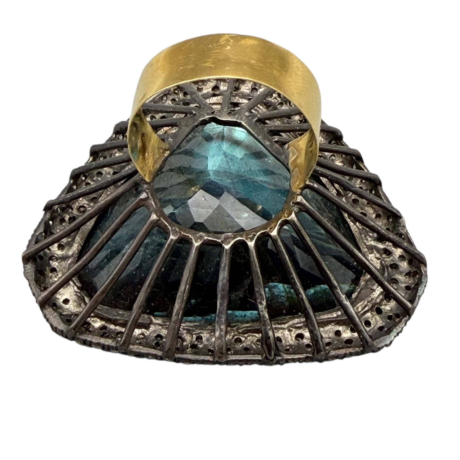 Abstract Labradorite Ring with Diamonds