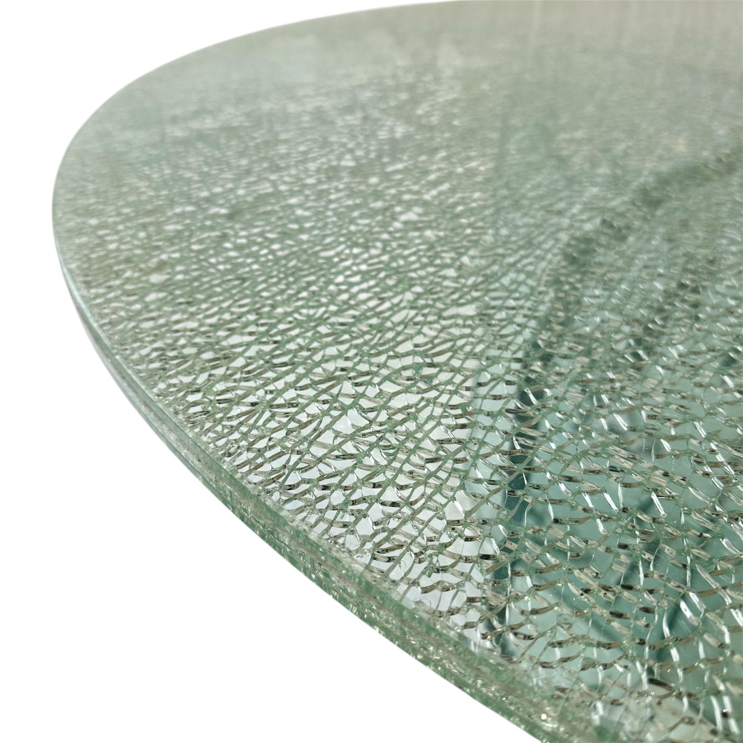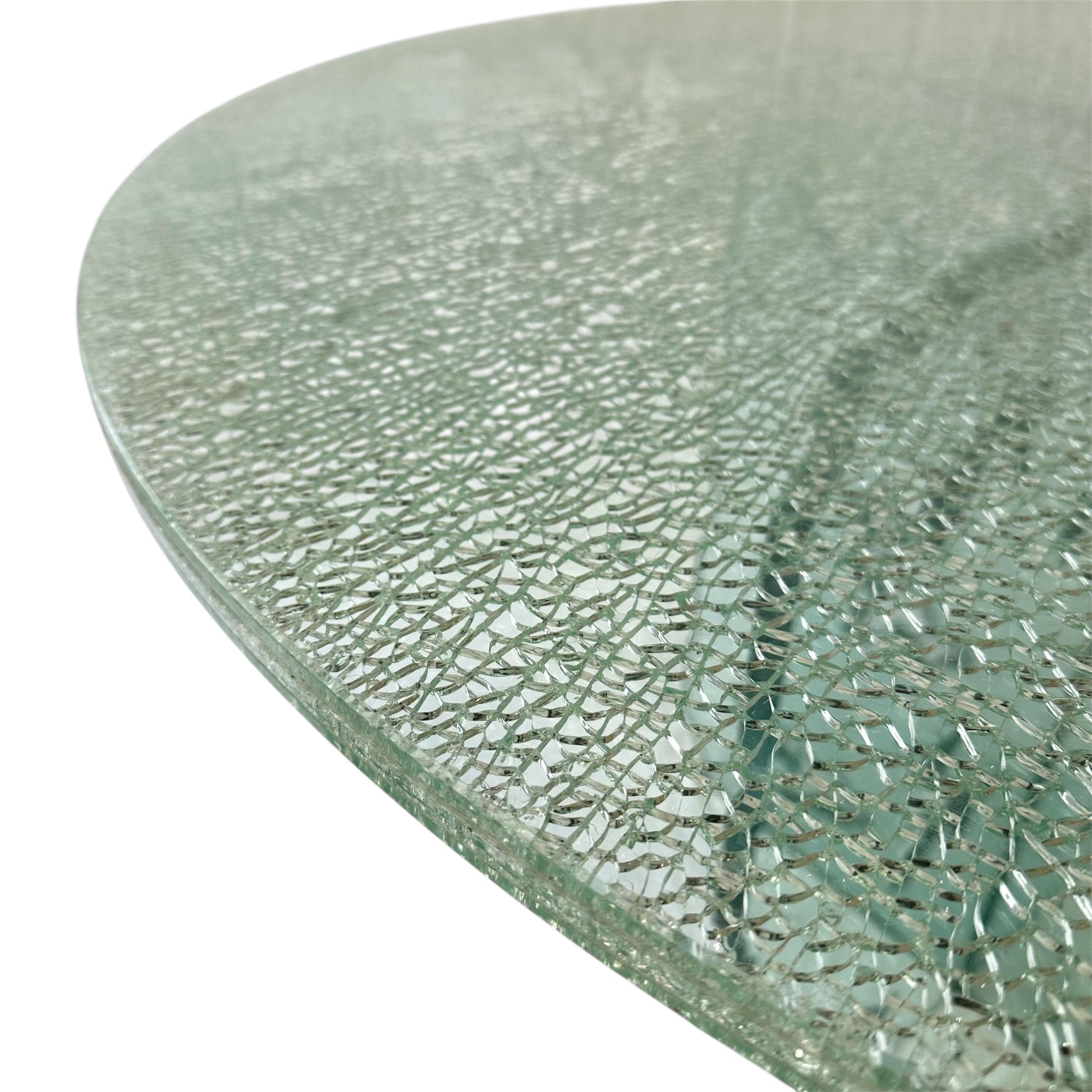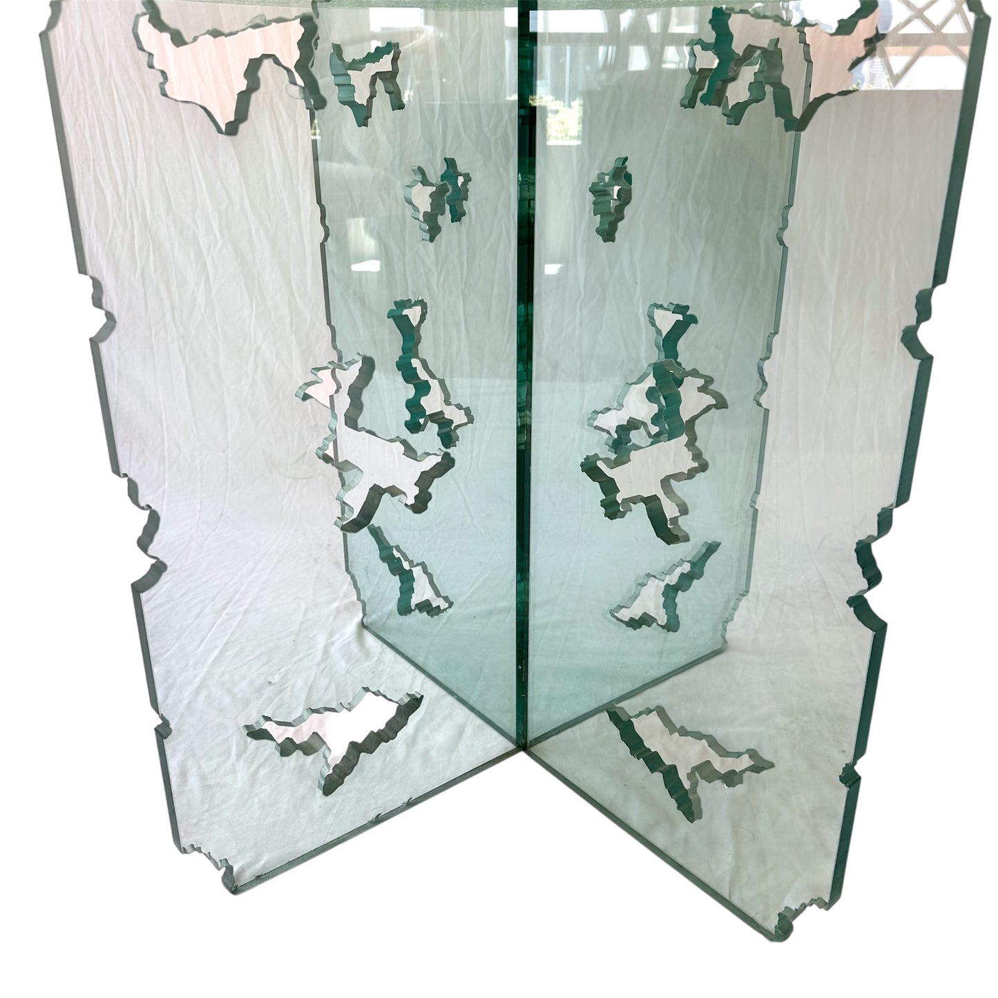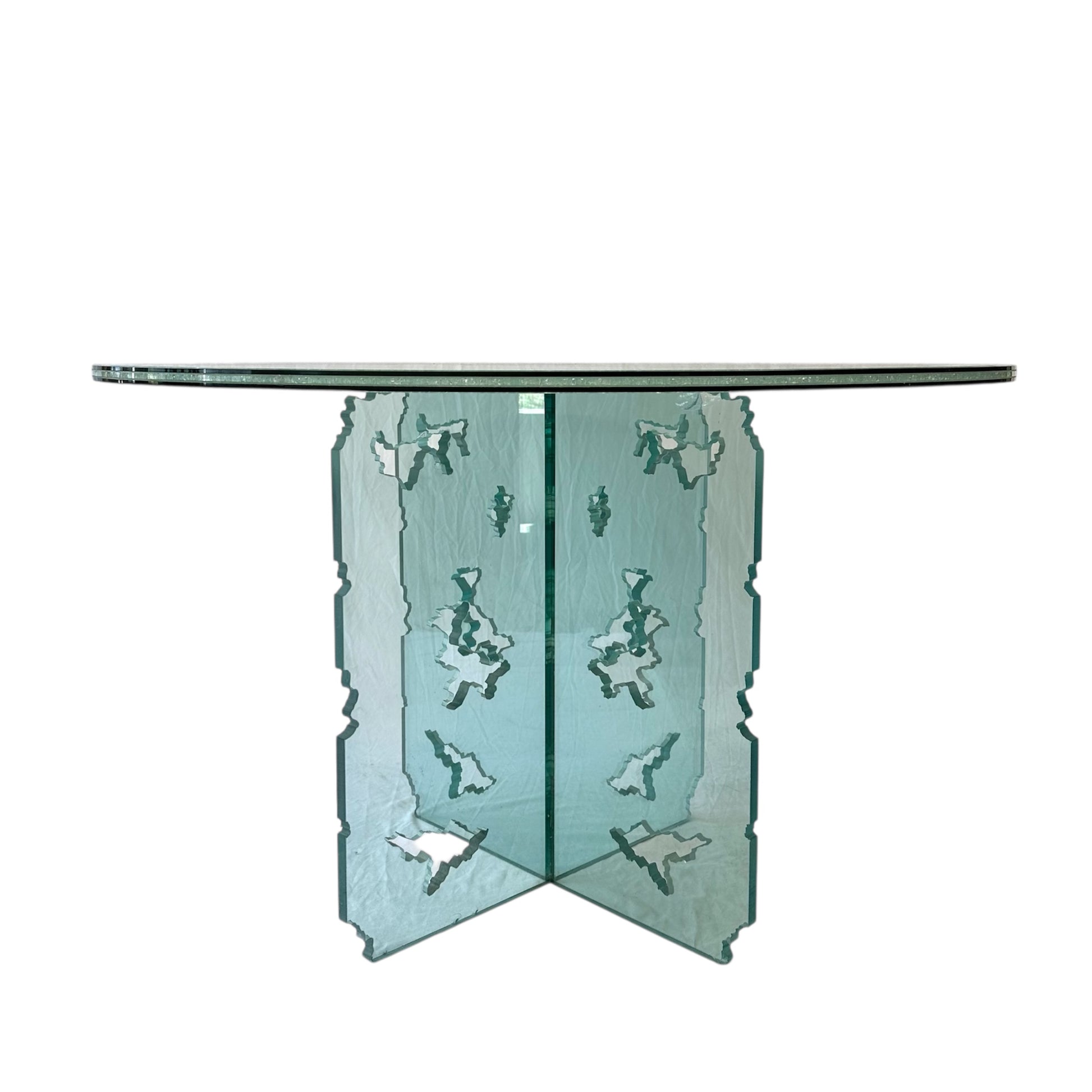 Rare Light Turquoise Green Crackled Glass Dining Table with Unique Cutout Base and Round Table Top
