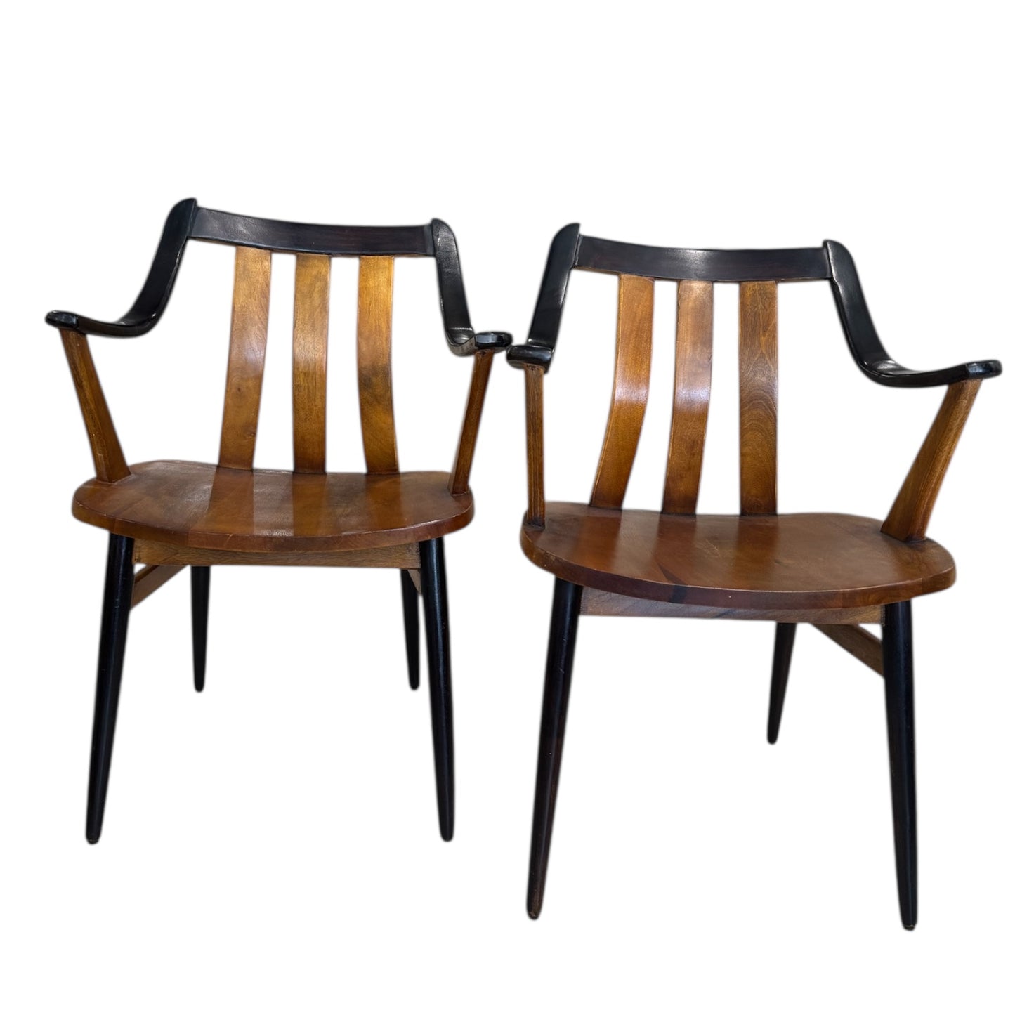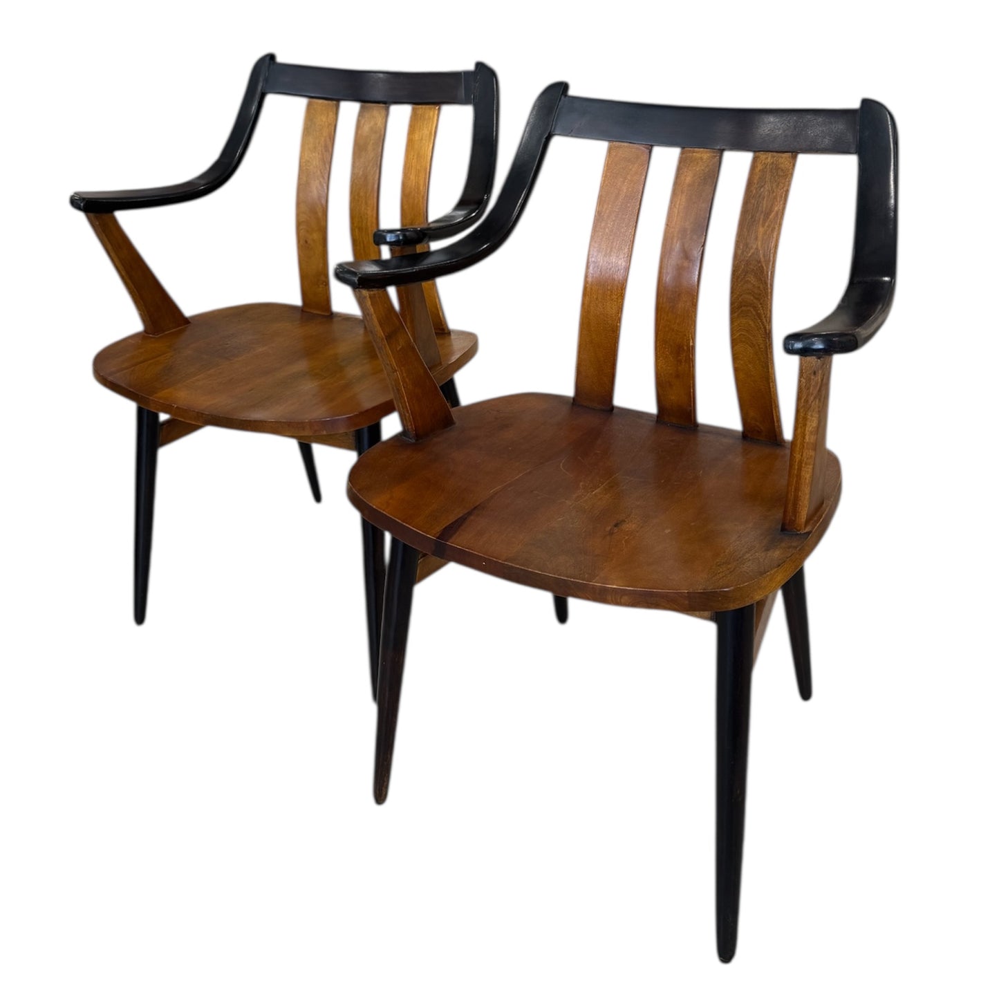 1960’s Pair of Teak Designer Bentwood Chairs Black and Brown