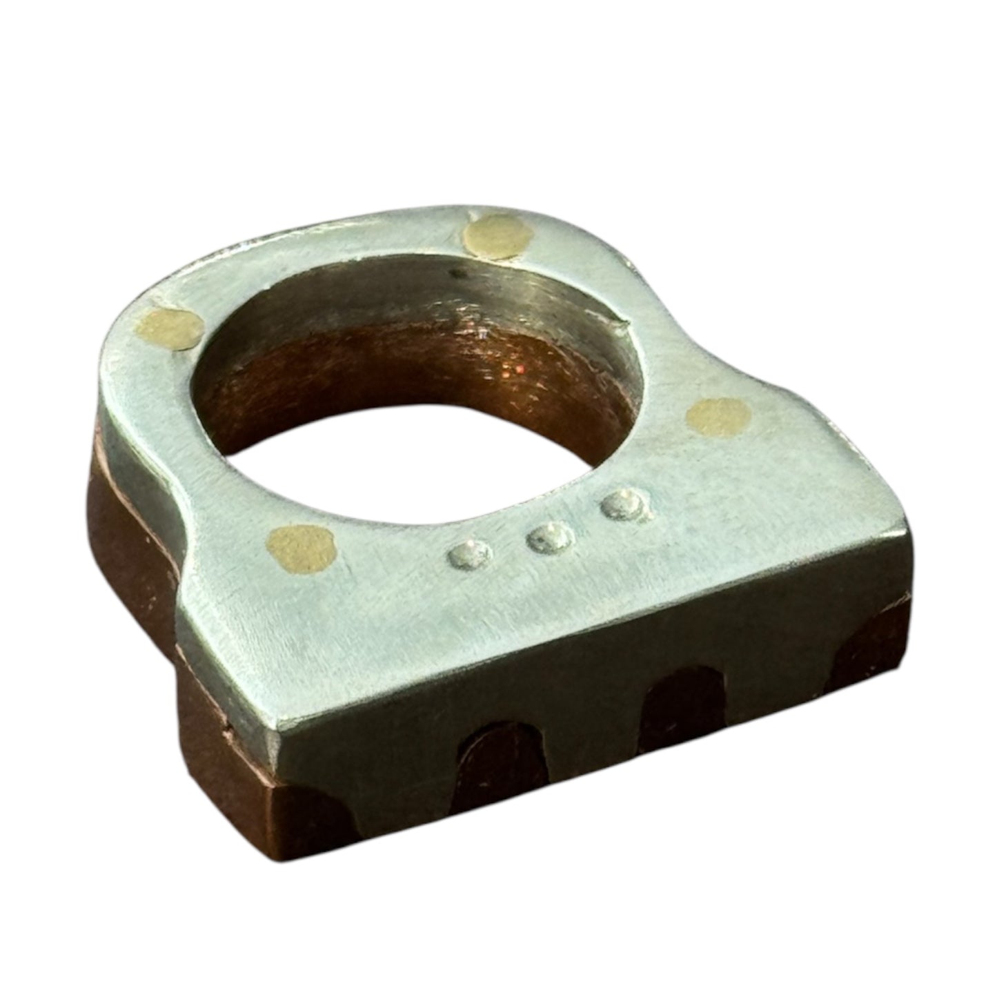 Silver Copper with Brass Rivets and Zig Zag Pattern