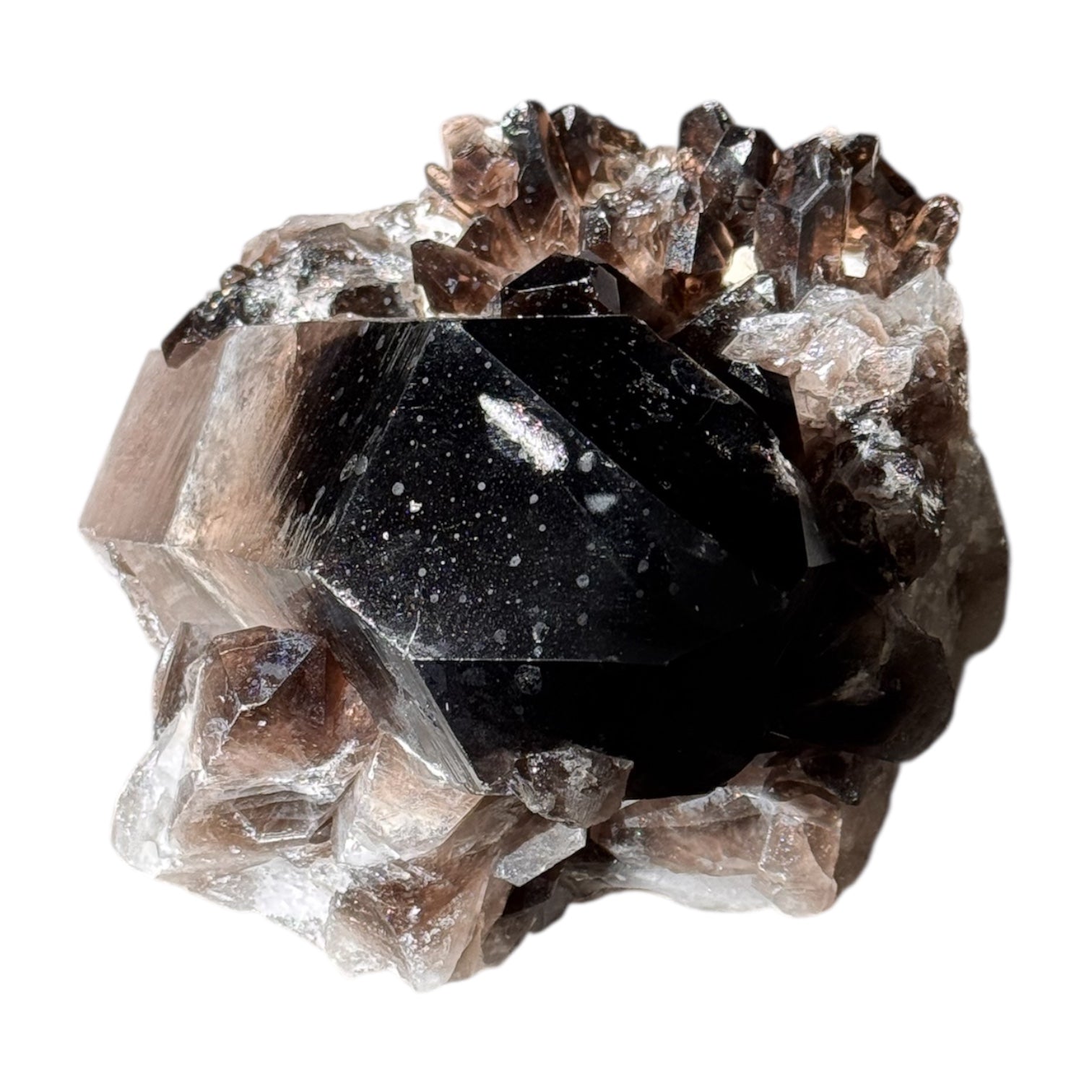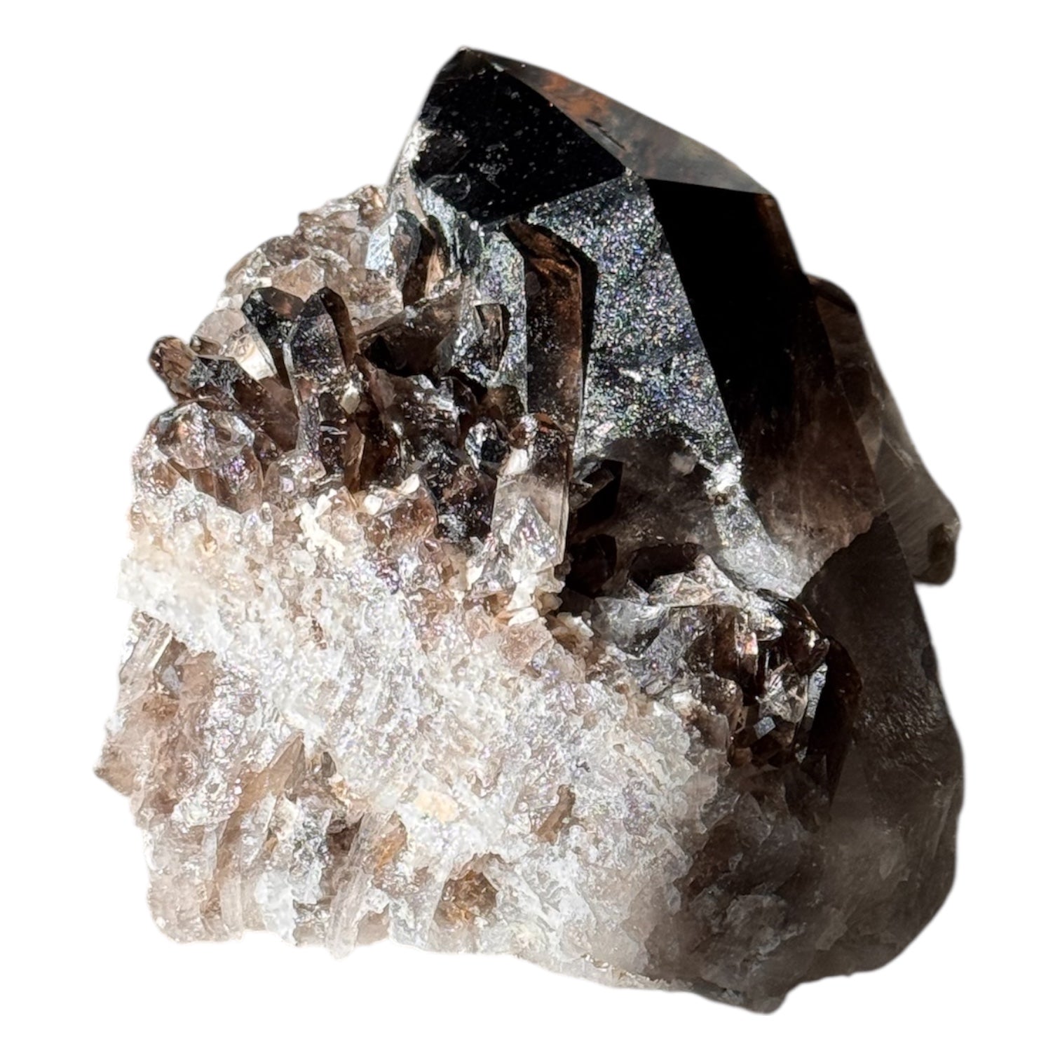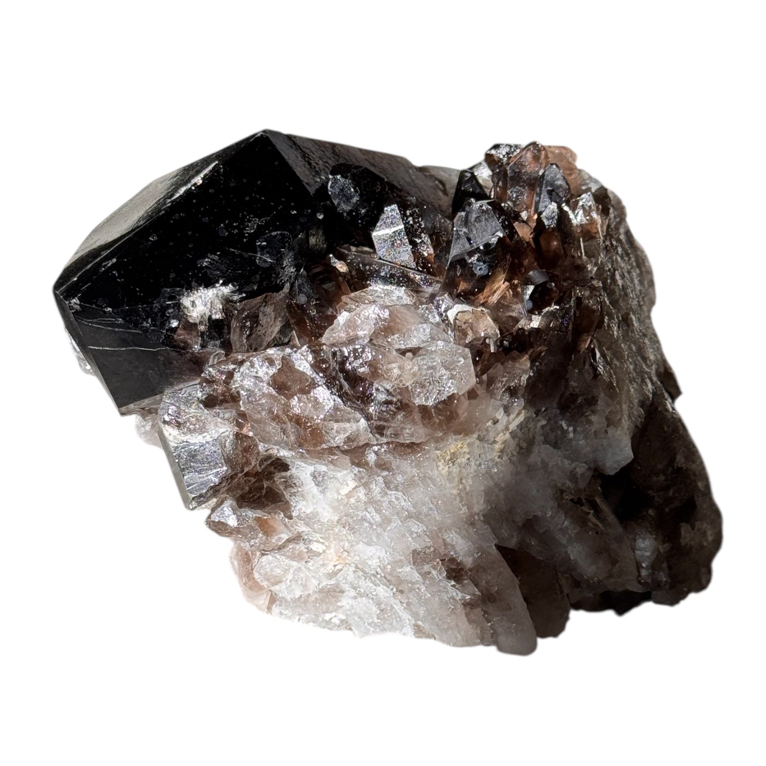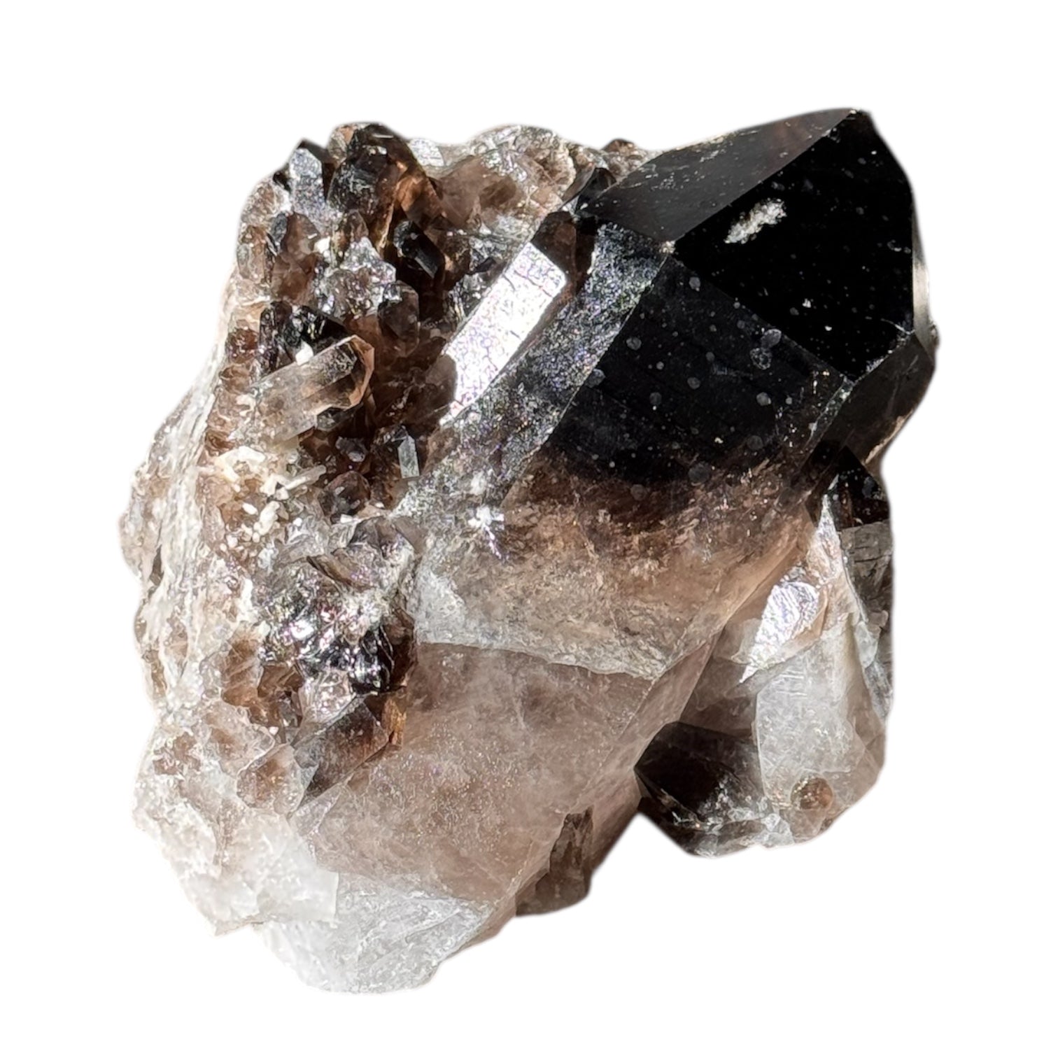Downward large smoky quartz generator with small generators free standing crystal cluster