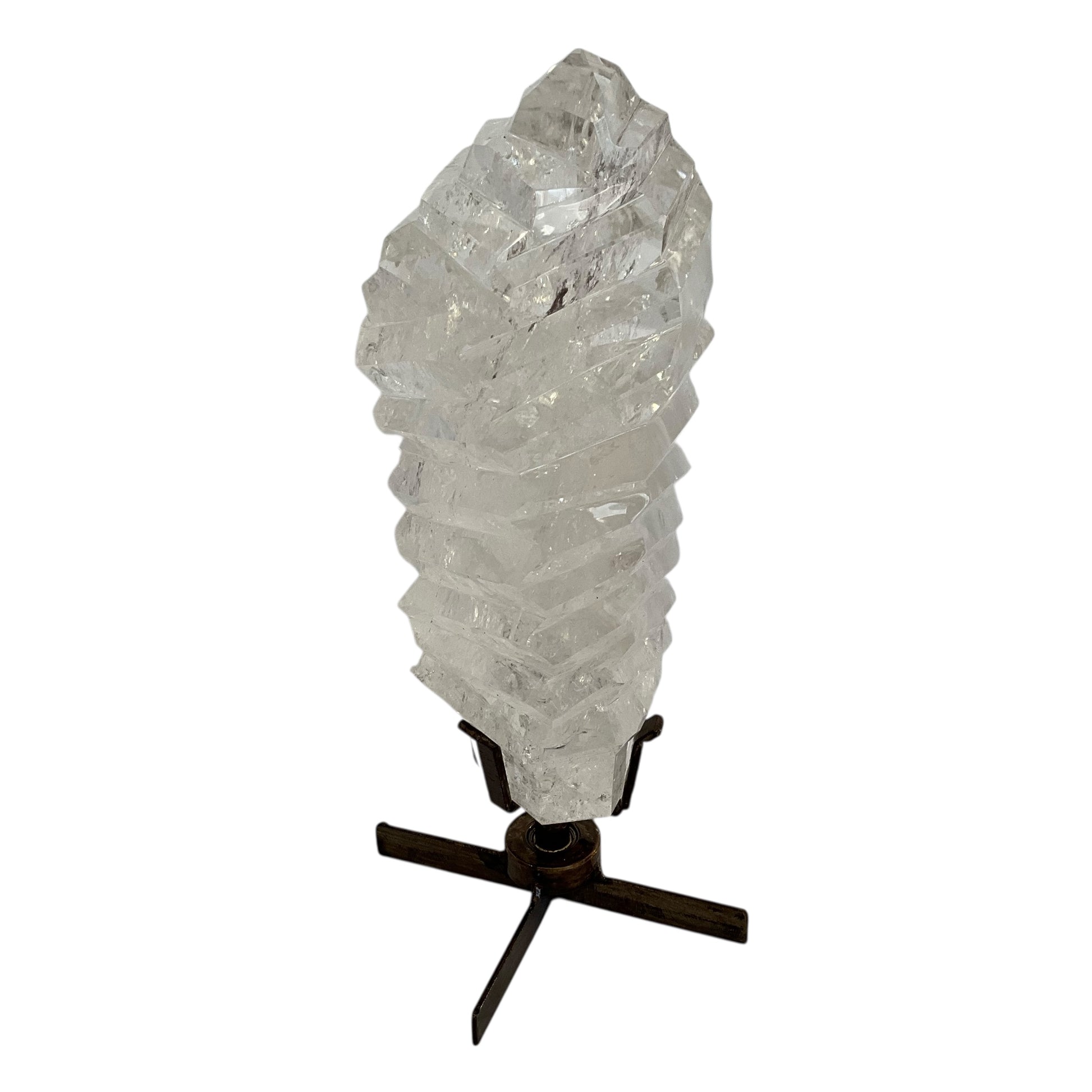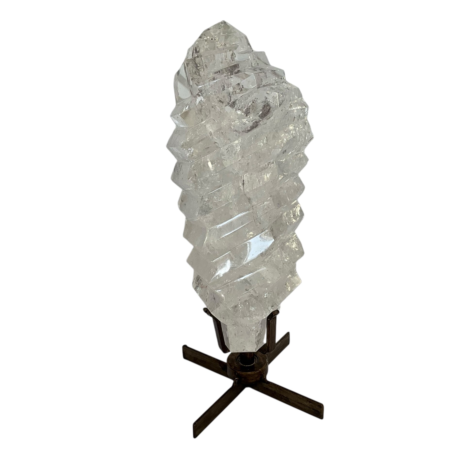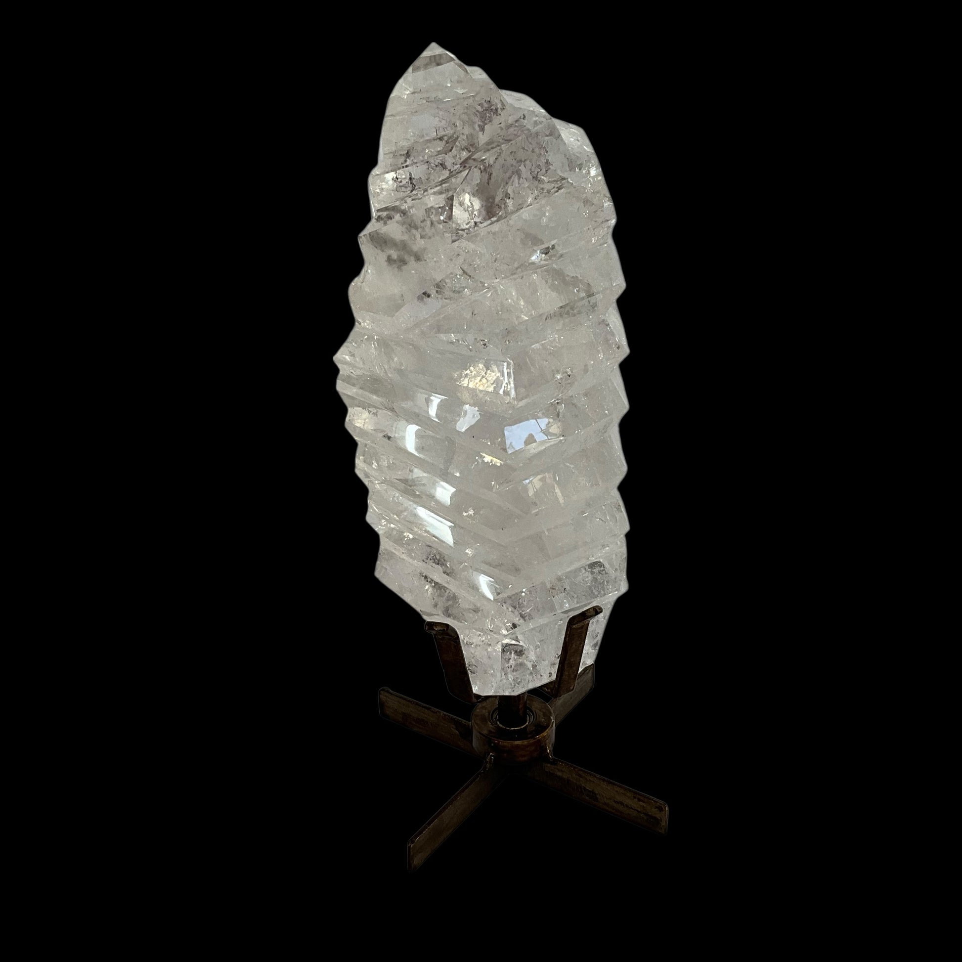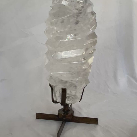 Polished Quartz Crystal on Spinning Metal Base