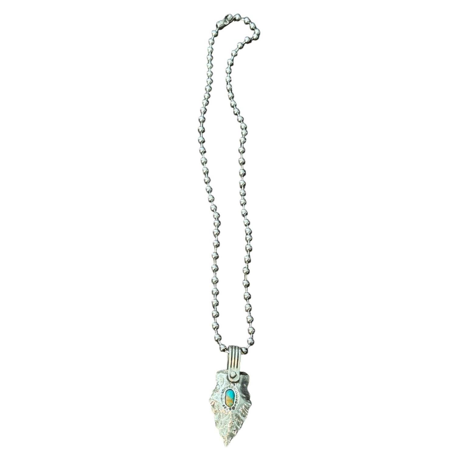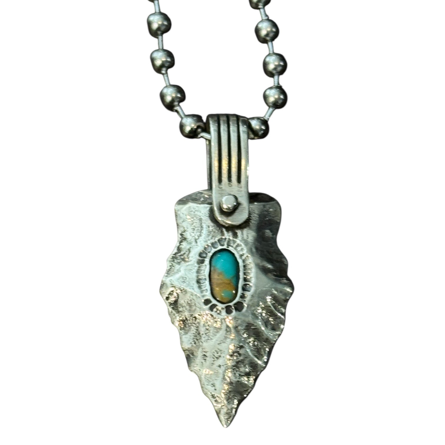 Sterling Silver & Royston Turquoise Arrow Head Necklace on Surgical Steel Ball Chain