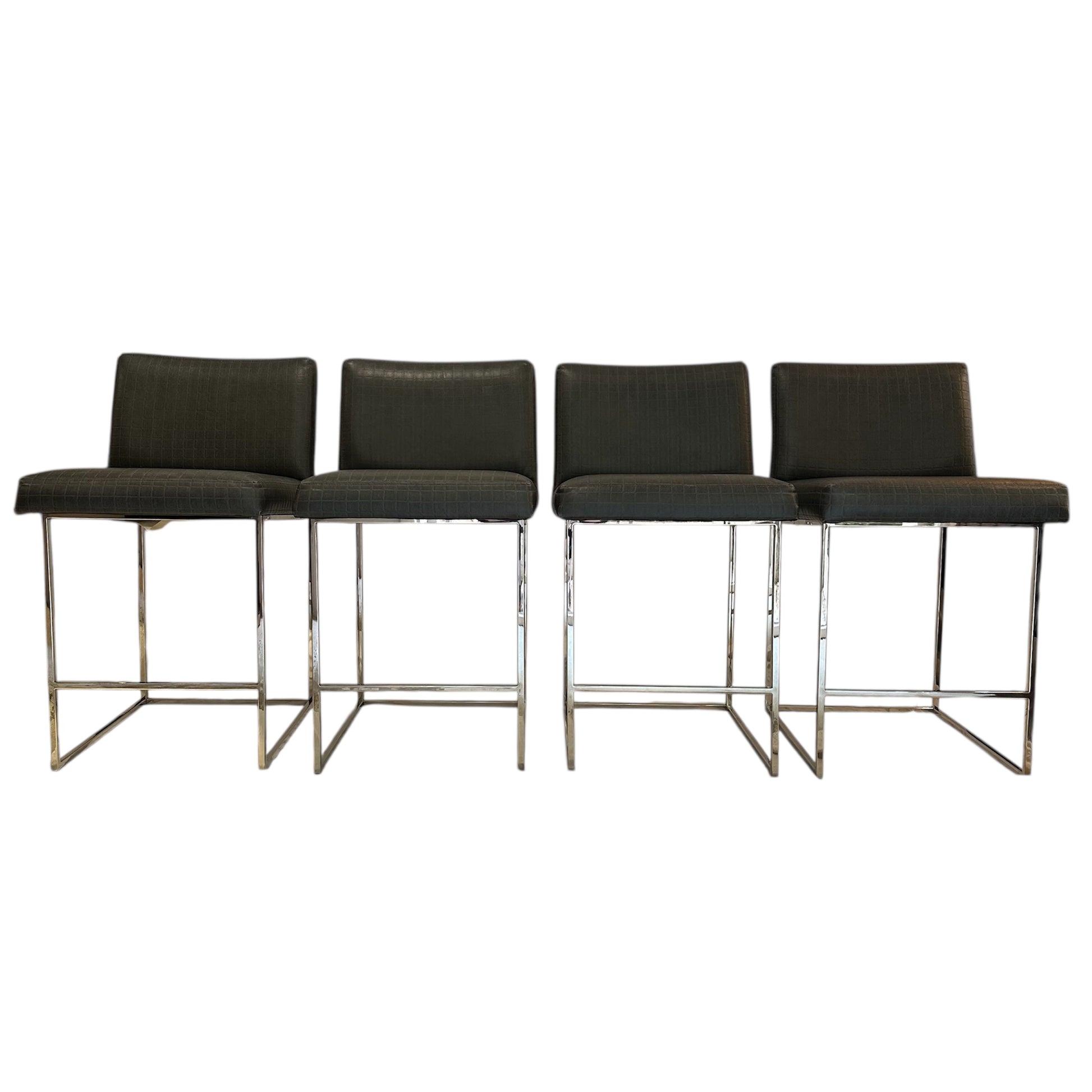 Milo Boughman for Thayre Coggin Set of Four Grey Leather Counter Stools