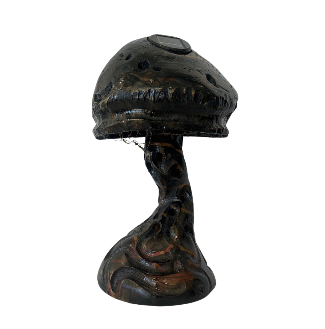 Wood Mushroom Sculpture with Built In Solar Panel