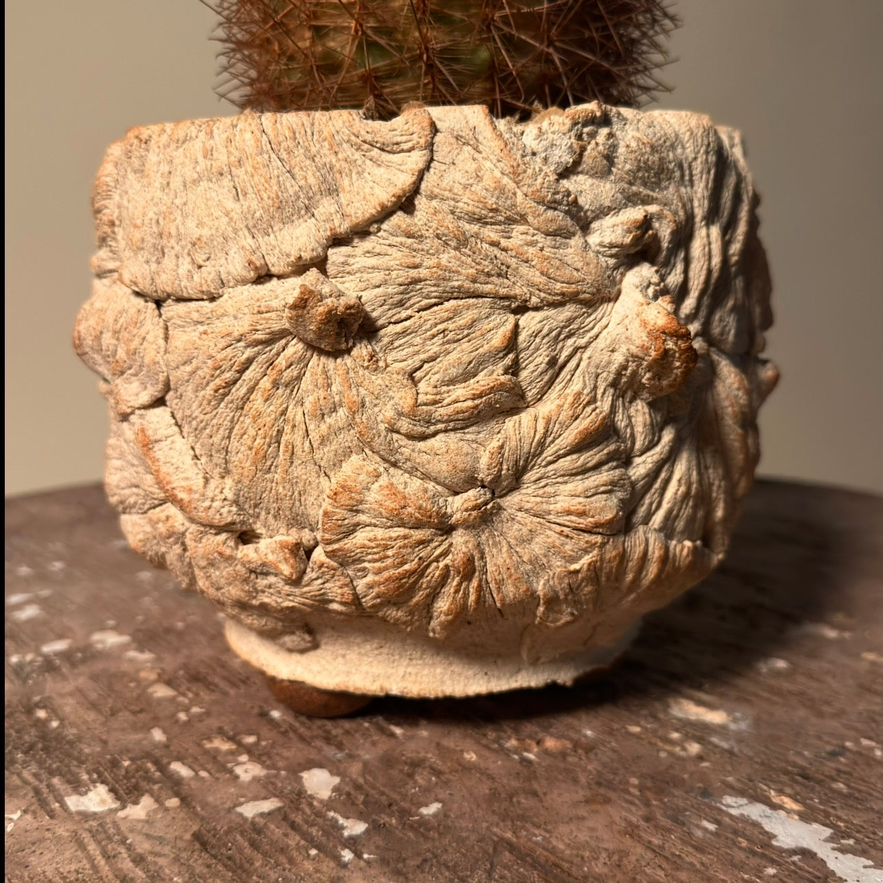 Wheel Thrown Turkey Tail Mushroom Textured Vessel in Sonora White Sculptural Clay