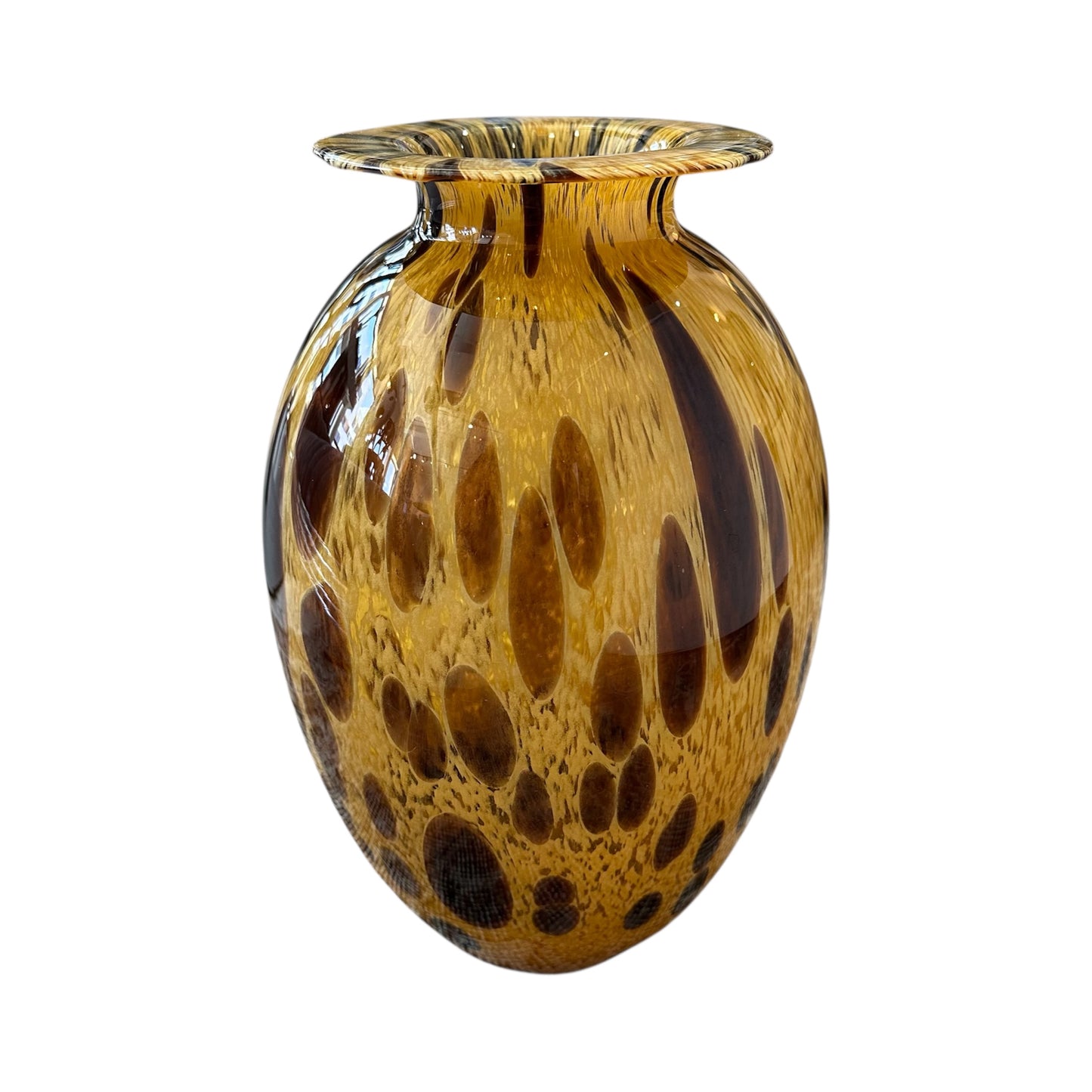 Vintage Hand-Blown Murano Art Glass Vase in a Beautiful Tortoise or Leopard-Like Pattern