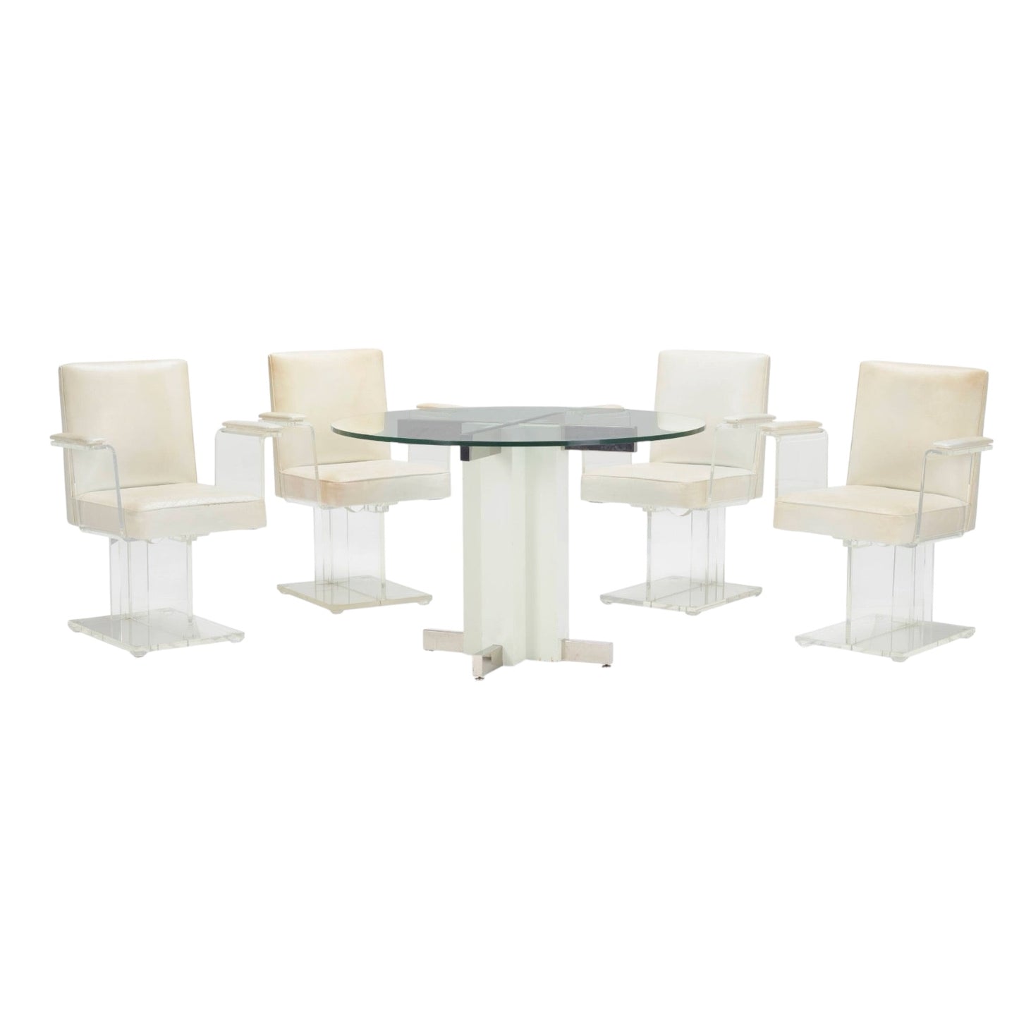 Set is comprised of one table and four T-Plex armchairs (model 6726A); five pieces total. Vladimir Kagan Designs, Inc. USA, c. 1965