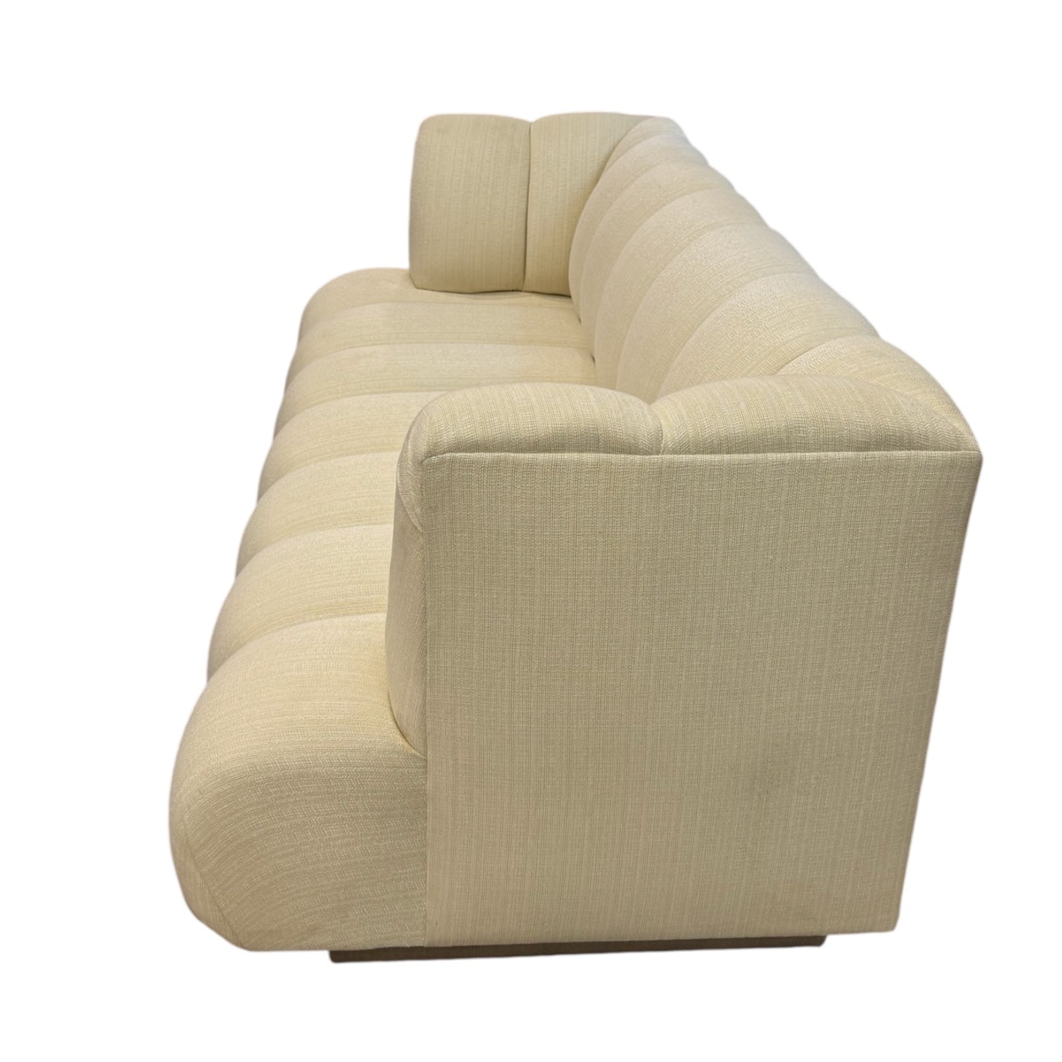 This sofa has been reupholstered with a very intentional creme fabric.